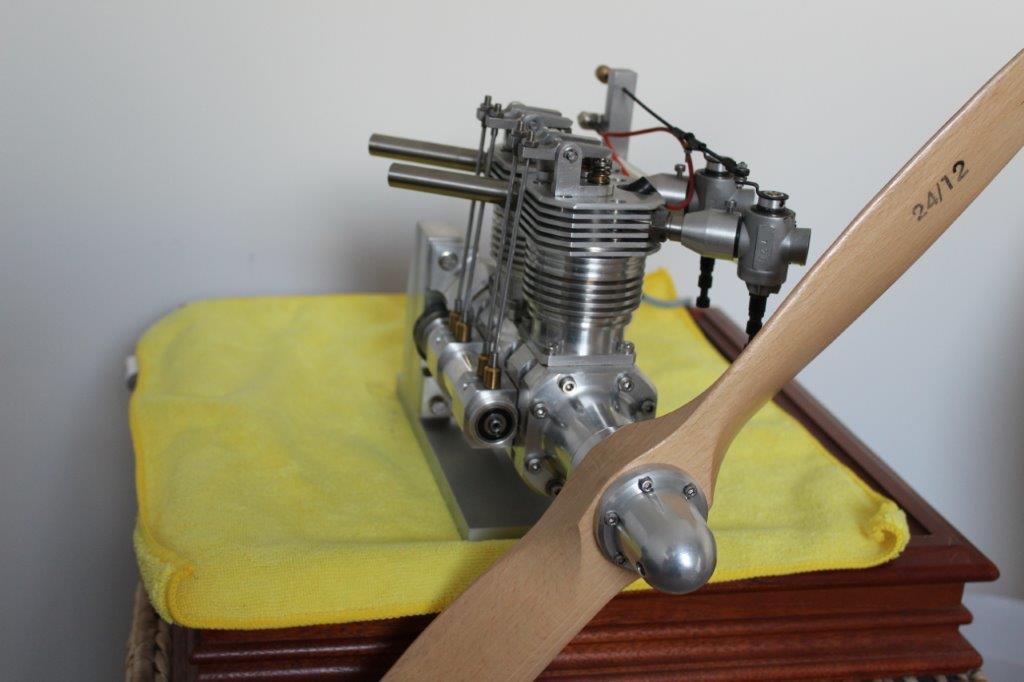 Anbei einige Fotos und ein Youtube-Video des 2-Zylinder-Reihenmotors bei einem der ersten Probeläufen, gefertigt von Steven Gould (England). Herr Gould hat den Motor innerhalb eines Zeitraumes von ca. 4 Monaten gefertigt. Tolles Ergebnis!