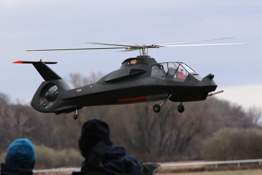 Nebenstehend einige Fotos von der weltweit einmaligen Eurocopter X3, im Vertrieb von Alterbaum Premium-Helicopter. Das Modell ist im Maßstab 1 : 4,5 ausgeführt. Der Rotordurchmesser beträgt 2,5 m bei einem Abfluggewicht von 35 kg. Das Modell ist, wie immer bei Alterbaum Premium-Helicopter, in absoluter Perfektion gefertigt und mit den Mechanik-Komponenten aus der Feder von "CAD+Modelltechnik Jung", wie z. B. die SRM-T "Python" Mechanik und den beiden originalgetreuen seitlichen Turboprop-Propellern ausgeführt. Die beiden Turboprop-Propeller sind wie beim Original der Eurocopter X3 sowohl für den Drehmomentausgleich des Hauptrotors als auch für die schnelle Vorwärtsgeschwindigkeit notwendig.