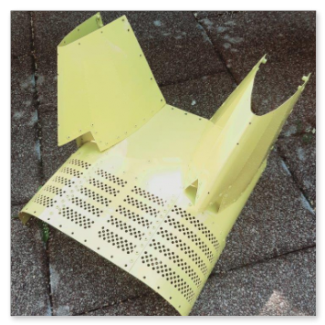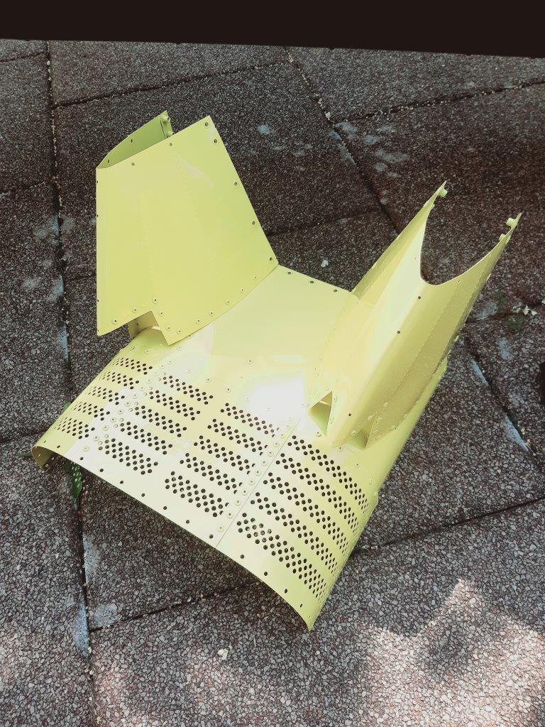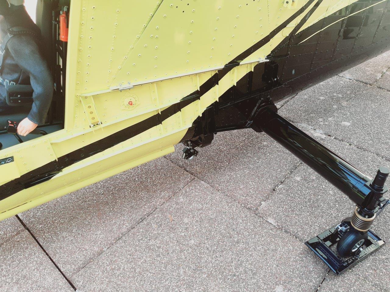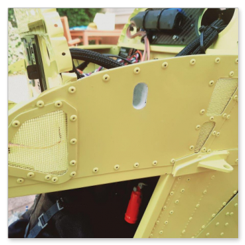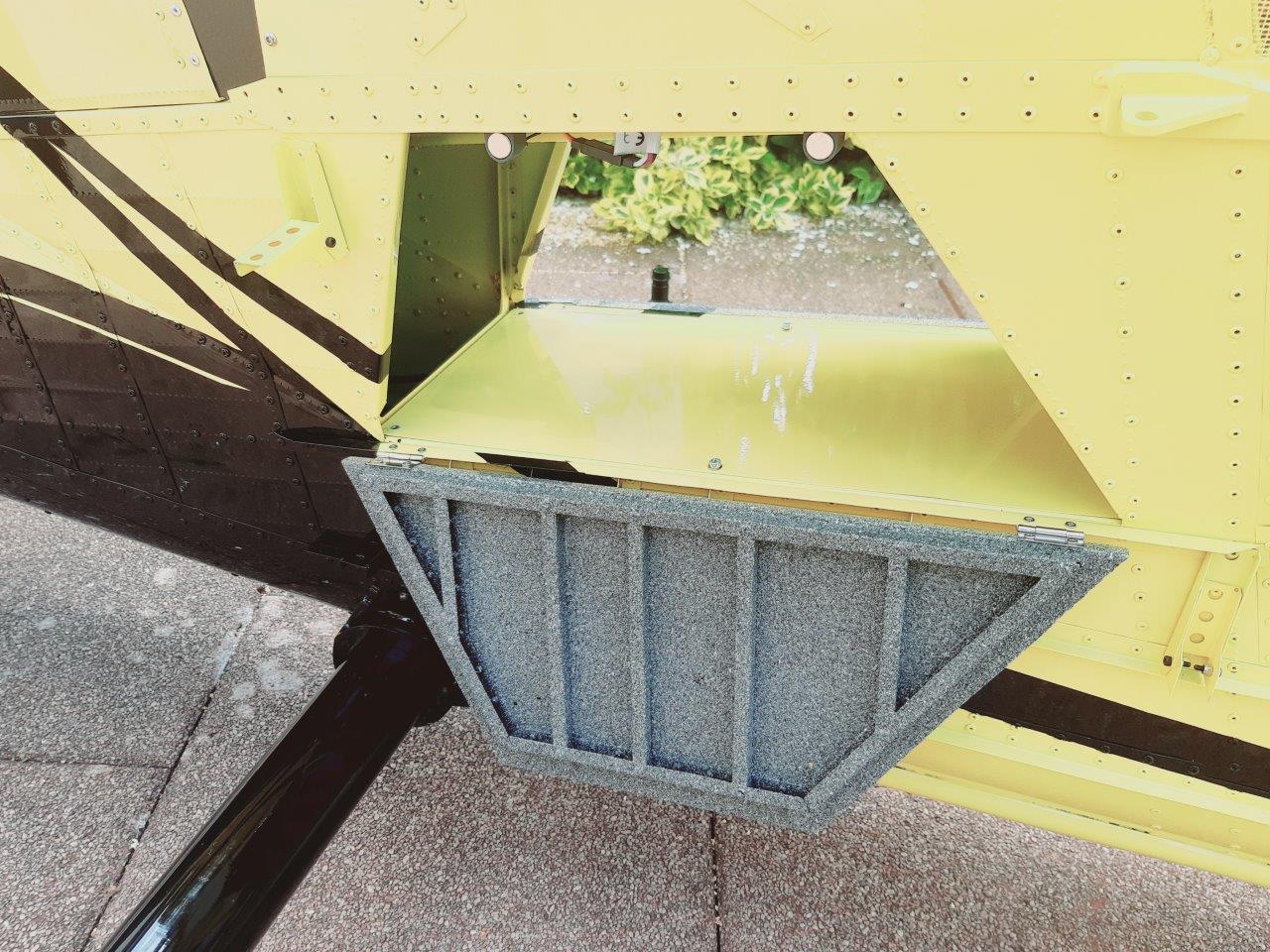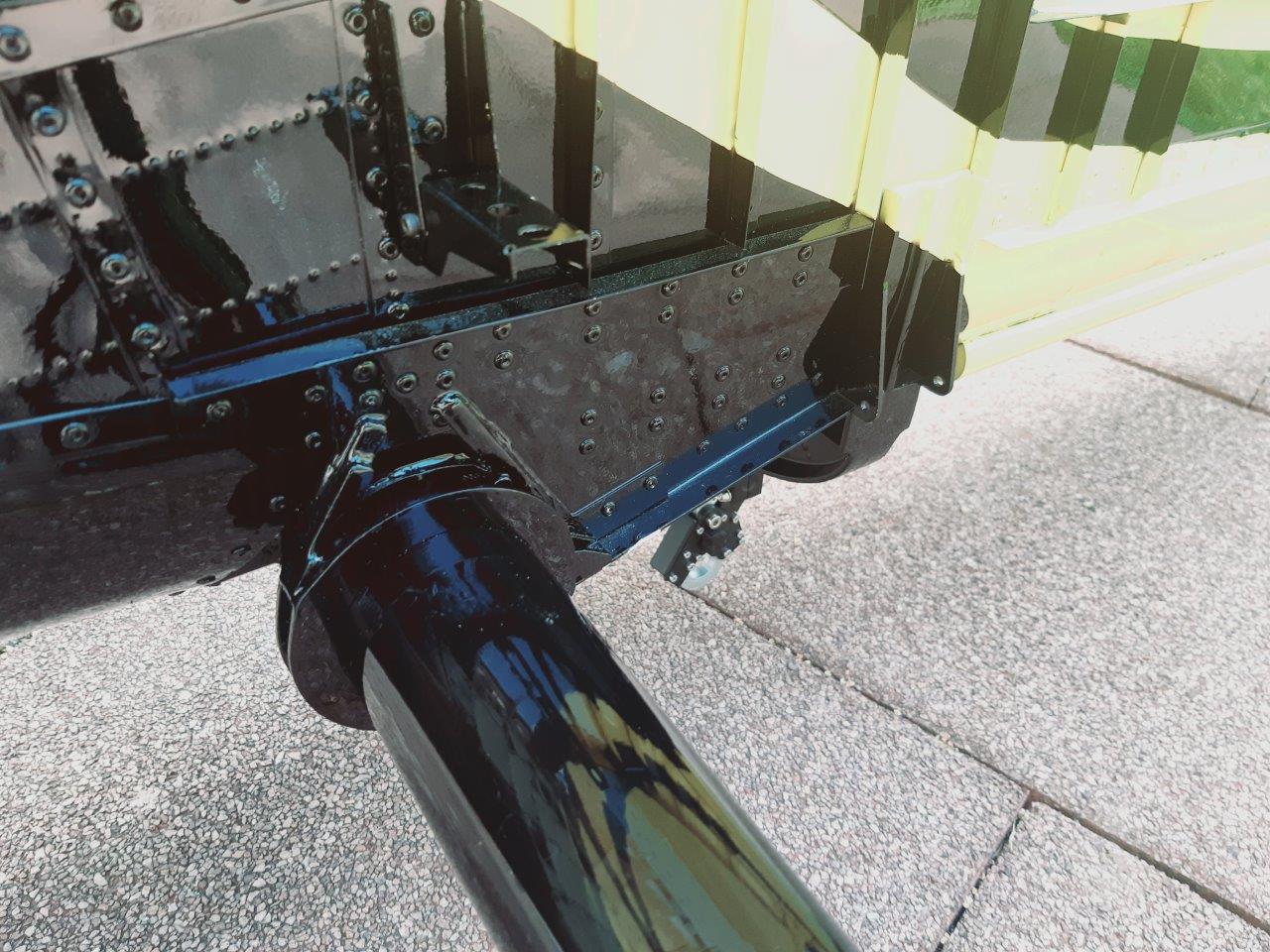 Die Rumpfzelle, gefertigt durch die spanische Firma www.alumodels.com, im Vertrieb durch Klaus Weise (XXL-Modelhelicopter) ist dabei komplett in Aluminium gefertigt, d.h. genau wie das Original ausgeführt. Mehr Scale geht nicht! Die dünnen Aluminiumbleche der gesamten Rumpfzelle sind innen mit einem stabilen Chassis aus Edelstahlblechen zu einer stabilen Einheit vernietet.
