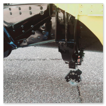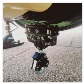 Angetrieben wird das Modell von einer Pahl Taurus 2-Wellenturbine. Die Turbine mit einer Leistung von ca. 12 kW hat leichtes Spiel mit dem über 22 kg schweren Modell. Unsere Python-Mechanik ist dazu wie geschaffen, so ein großes und schweres Modell incl. dem leistungszehrenden 5-Blatt-Rotorkopf sicher und zuverlässig anzutreiben. Durch das Ölbadgetriebe des Kegelzahnradtiebes wird eine enorm hohe Standzeit der gesamten Mechanik gewährleistet. Durch einige zusätzliche Anbauteile wurde der Rotorkopf dem Original der Mi-8 nach empfunden. Diese Aufrüstteile werden zukünftig auch direkt durch Hr. Strupf angeboten.