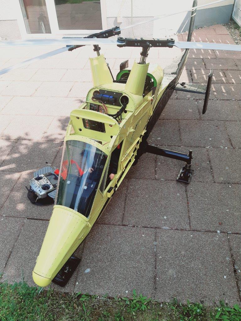 Das nebenstehende Bild zeigt die Bell AH-1 Super-Cobra von Josef Alterbaum (Döttingen) bei einem der ersten Testflüge. Das komplett in Eigenregie erstellte Modell hat einen Rotordurchmesser von 2,8 m. Montiert ist unsere Python-Mechanik SRM-T Version 3 ausgerüstet mit einer PJW-Turbine Pro-5000. Montiert ist ebenfalls unser neuer 2-Blatt-Rotorkopf für einen Rotordurchmesser bis 3,2 m.