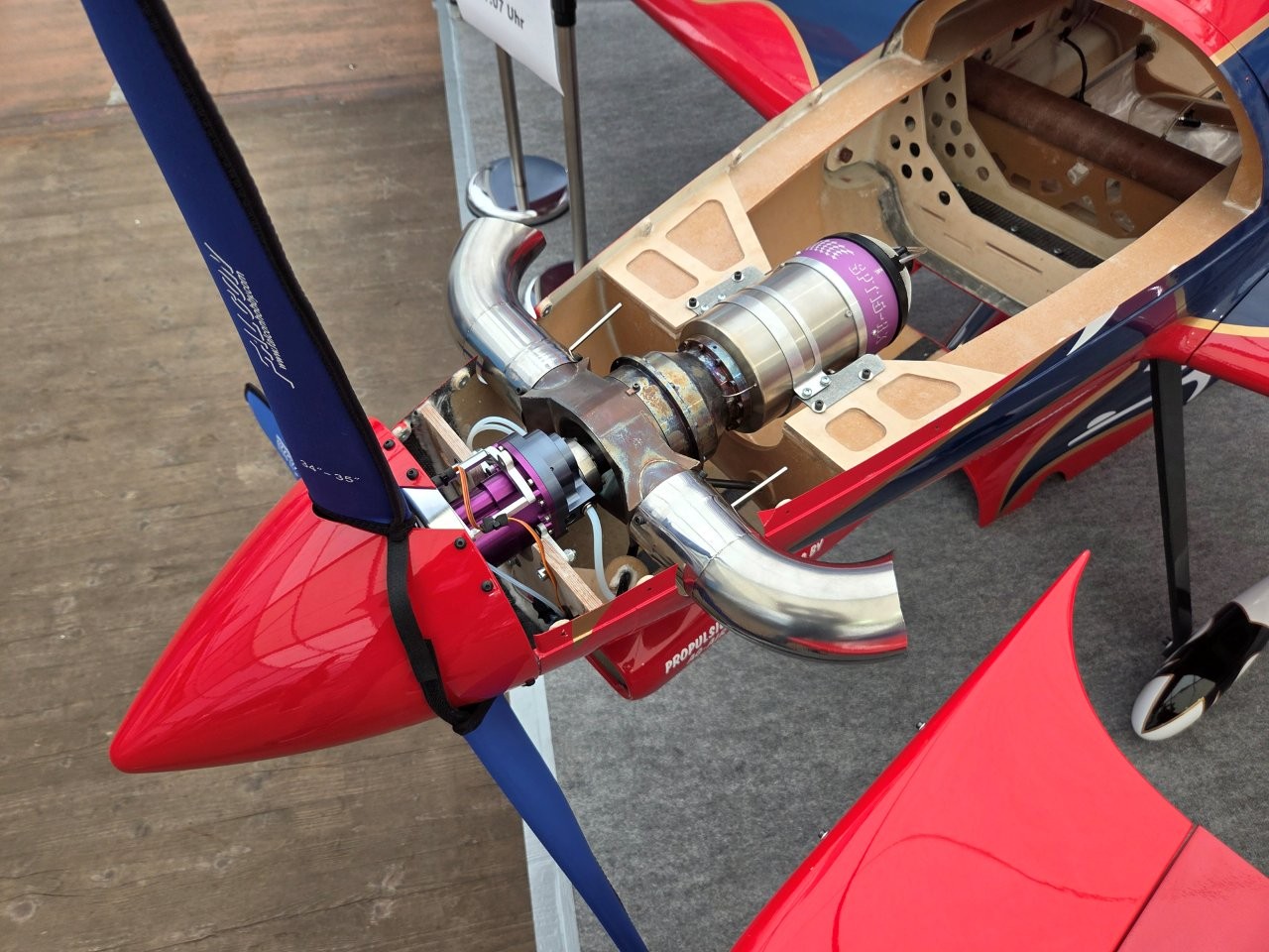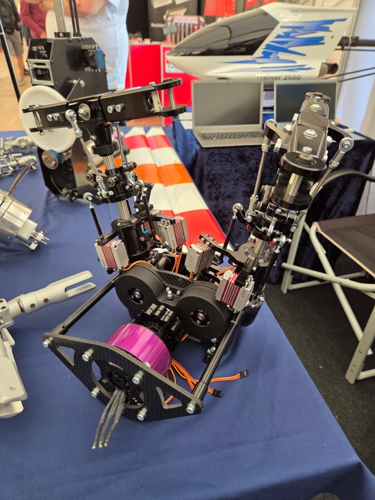 Auf den obingen Fotos ist die Kaman K-Max 1200 in einigen Details zu sehen. Außerdem die Elektro-Flettner-Mechanik für die Abeille NC-2001. Und die neue Python-Mechanik, angetrieben mit der SPT10-RX-H.