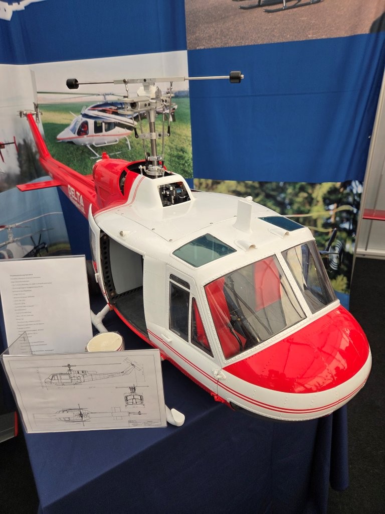 Anbei einige Bilder unseres Messestandes. Neben dem bereits bekannten Koaxialrotor-Trainer mit dem gegenläufigen Rotorsystem mit einem Rotordurchmesser von 2,0 m bzw. 2,4 m, wurde auch die Rumpzelle der Kamov Ka-52 mit eingebauter Benzinmotor-Mechanik gezeigt (Maßstab 1 : 6). Eine Turbinen-Einbaumechanik rundete das Thema Koaxialrotor-System ab.