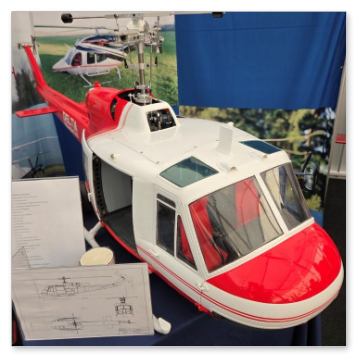 - Auf dem Messestand der Fa. Heliclassics war diese Mil-Mi 8 mit unserem montierten 5-Blattrotorkopf und der Python-Mechanik (Antrieb mittels Pahl-Taurus) zu sehen. Die Ausführung des 5-Blattrotors wurde mit Anbauteilen aus Kunststoff auf Scale getrimmt. Die Anbauteile gibt es zukünftig direkt bei Fa. Heliclassics zu beziehen.