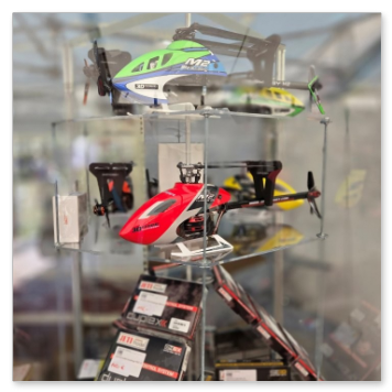 - Der Koax-Trainer CRM-T "Alligator" mit Koaxialrotor-System. Im Vordergrund die SRM-X "Python" Mechanik mit Pro-X (10 kW)